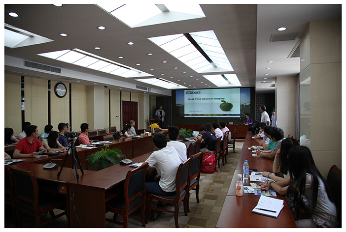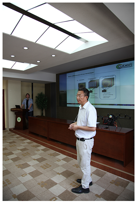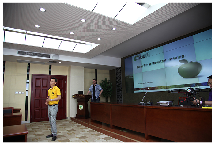 2014年6月12日中午,德中天地南京分公司總經(jīng)理邀請Cubert GmbH公司CEO Michels博士到南京農(nóng)業(yè)大學(xué)做UHD185框幅式UAVmini高光譜攝像儀技術(shù)報(bào)告會。