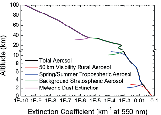 MODTRAN software produces integrated transmission and radiance at the sensor along a line of sight from all sources including cloud and aerosol scatter. MODTRAN models include fully featured atmospheric transmission, reflection, refraction and absorption of light. Millions of MODTRAN calculations can be run and used to produce a realistic multi-color scene simulation or remove atmospheric effects from multi-color remotely sensed imagery.